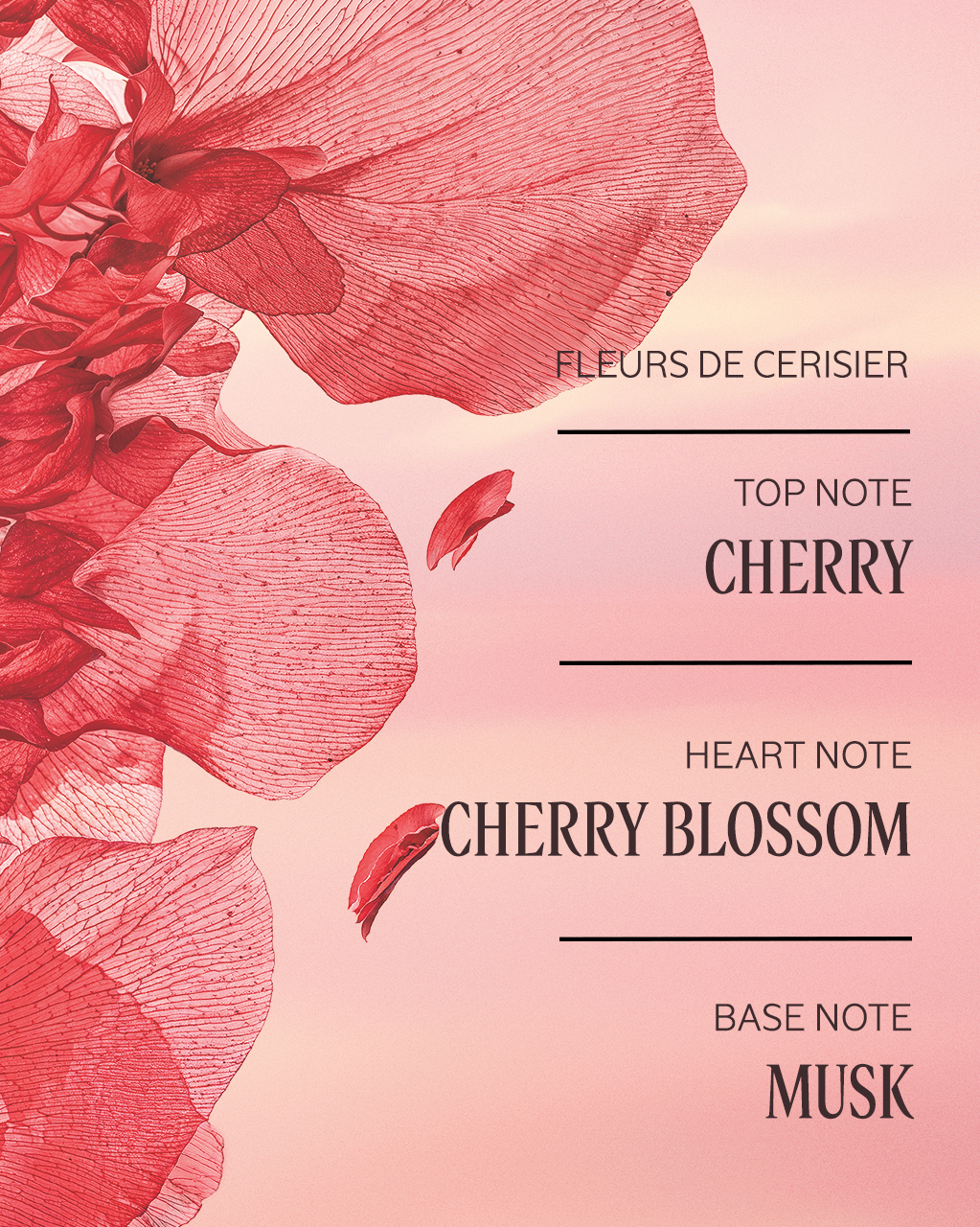 Fleurs de Cerisier Eau de Toilette (7.5ml; 0.25 fl. oz.): Both delicate & floral, evoking fresh notes of cherry blossom from Provence, lily of the valley, and a base of creamy amber and woody musk.