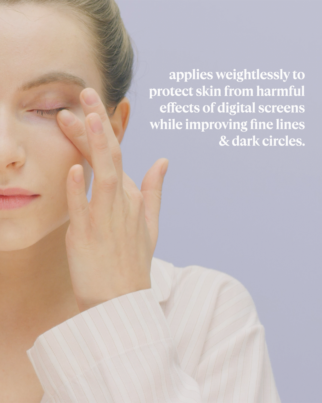 This eye balm applies weightlessly to visibly protect skin from harmful effects of digital screens (blue light) while improving fine lines and dark circles.