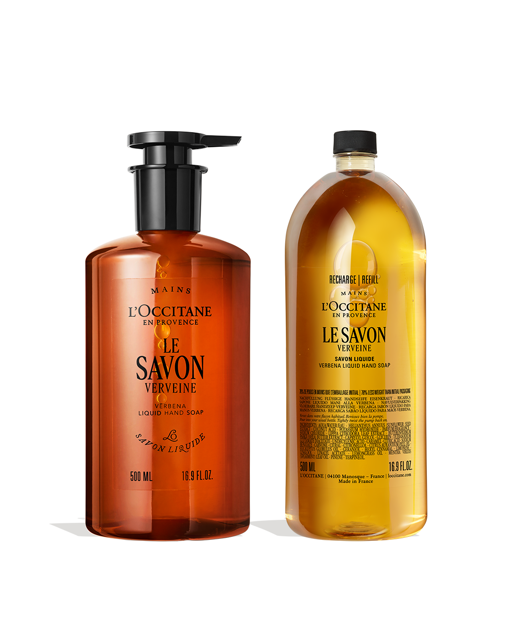 Le Savon Verbena Liquid Hand Soap (500ML ; 16.9 FL. OZ.) + Refill Size